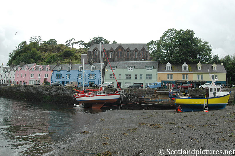 Portree is the biggest town at the the Isle of Skye at it has a population of about 2,500. It is a cultural center of that isle and a large tourist attraction in Scotland.